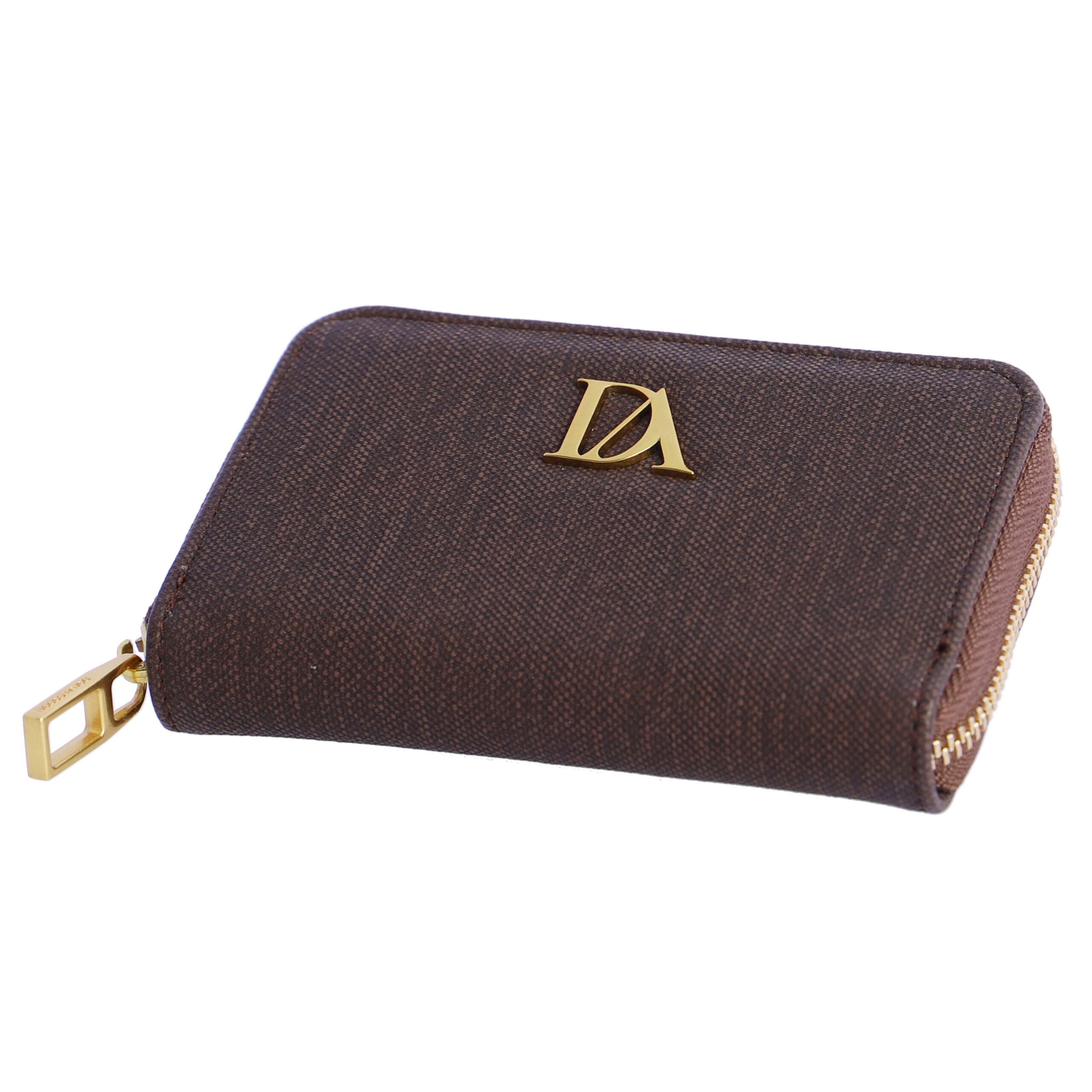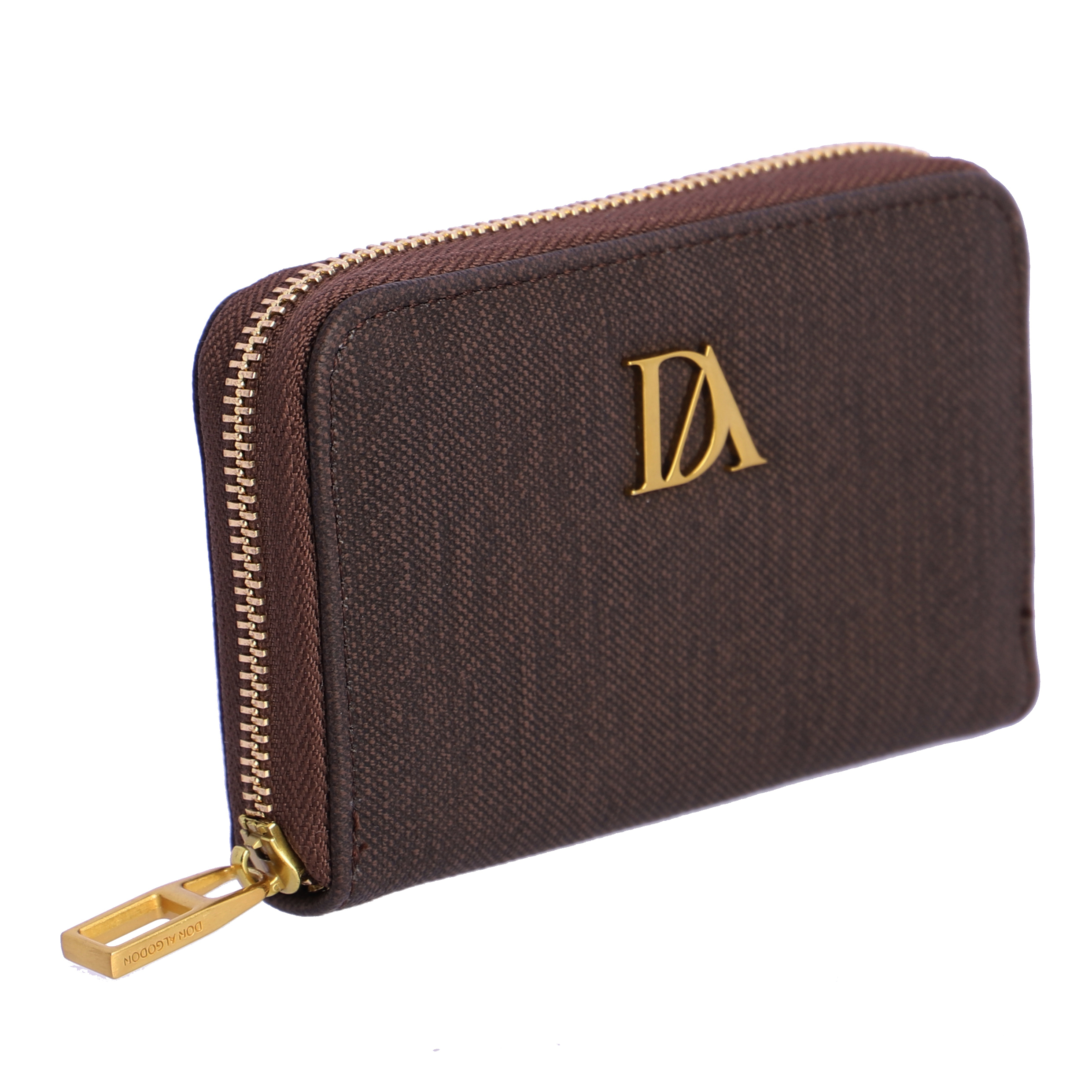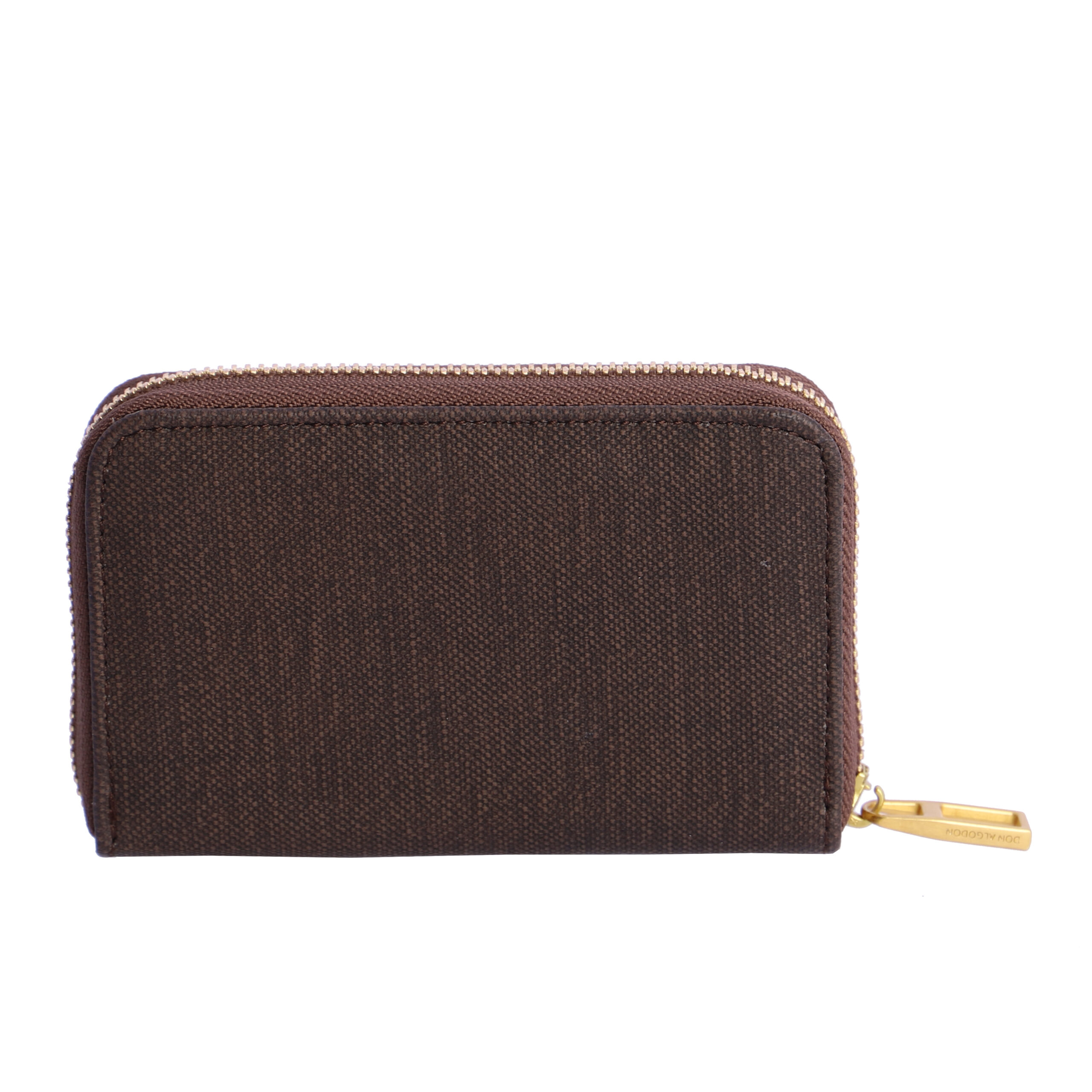 Cartera para mujer Don ALGODON marrón tela con cremallera. logo en la parte frontal. Tiene cierre de cremallera con tirador metálico con logo, dispone muchas ranuras para tarjetas y un monedero con cierre de cremallera.