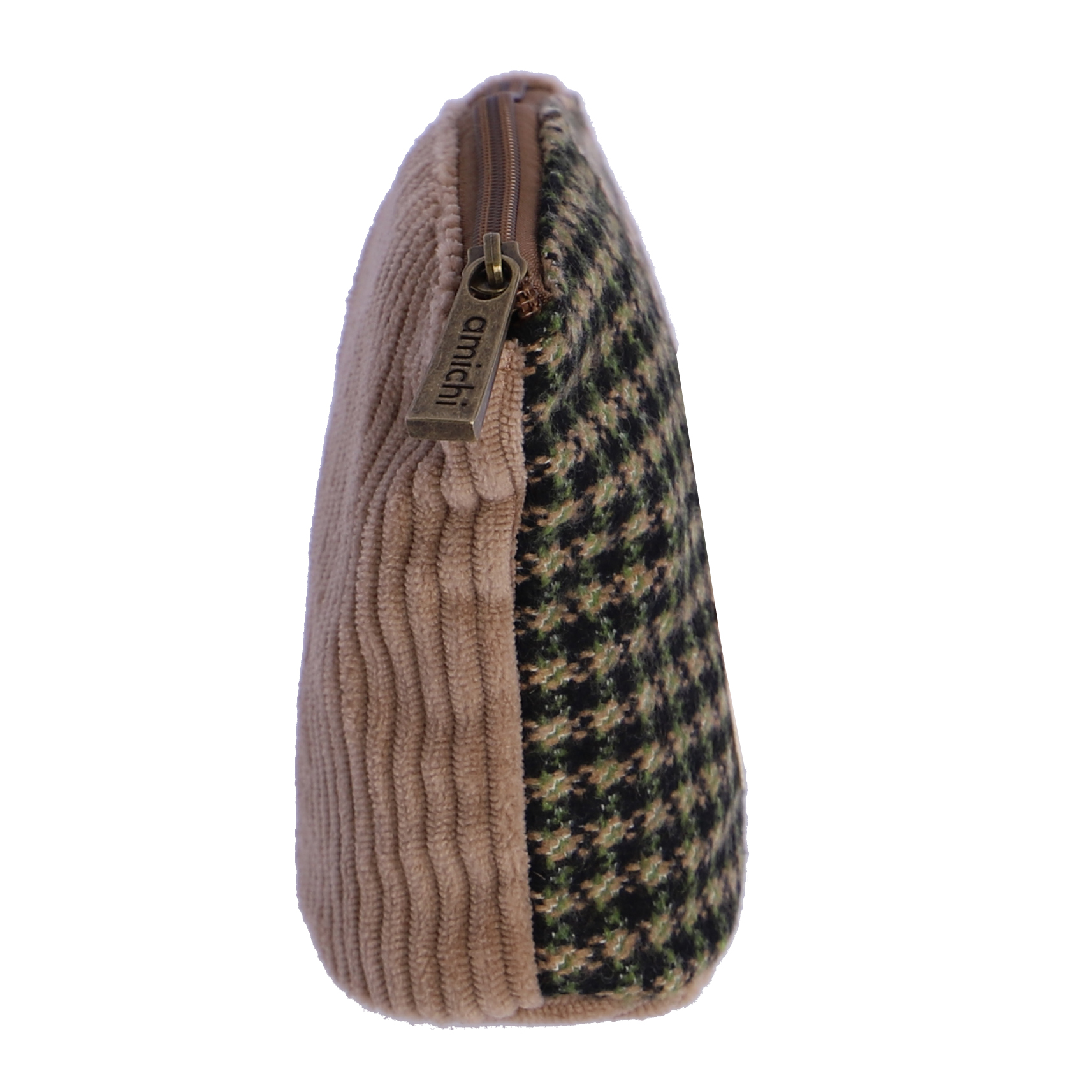 Neceser para mujer Amichi Gardenia con  tejidos de diferentes texturas. Tiene cierre de cremallera con tirador metálico con logo. Medidas: 14(ancho) x 7(fondo) x 13(alto)cm.